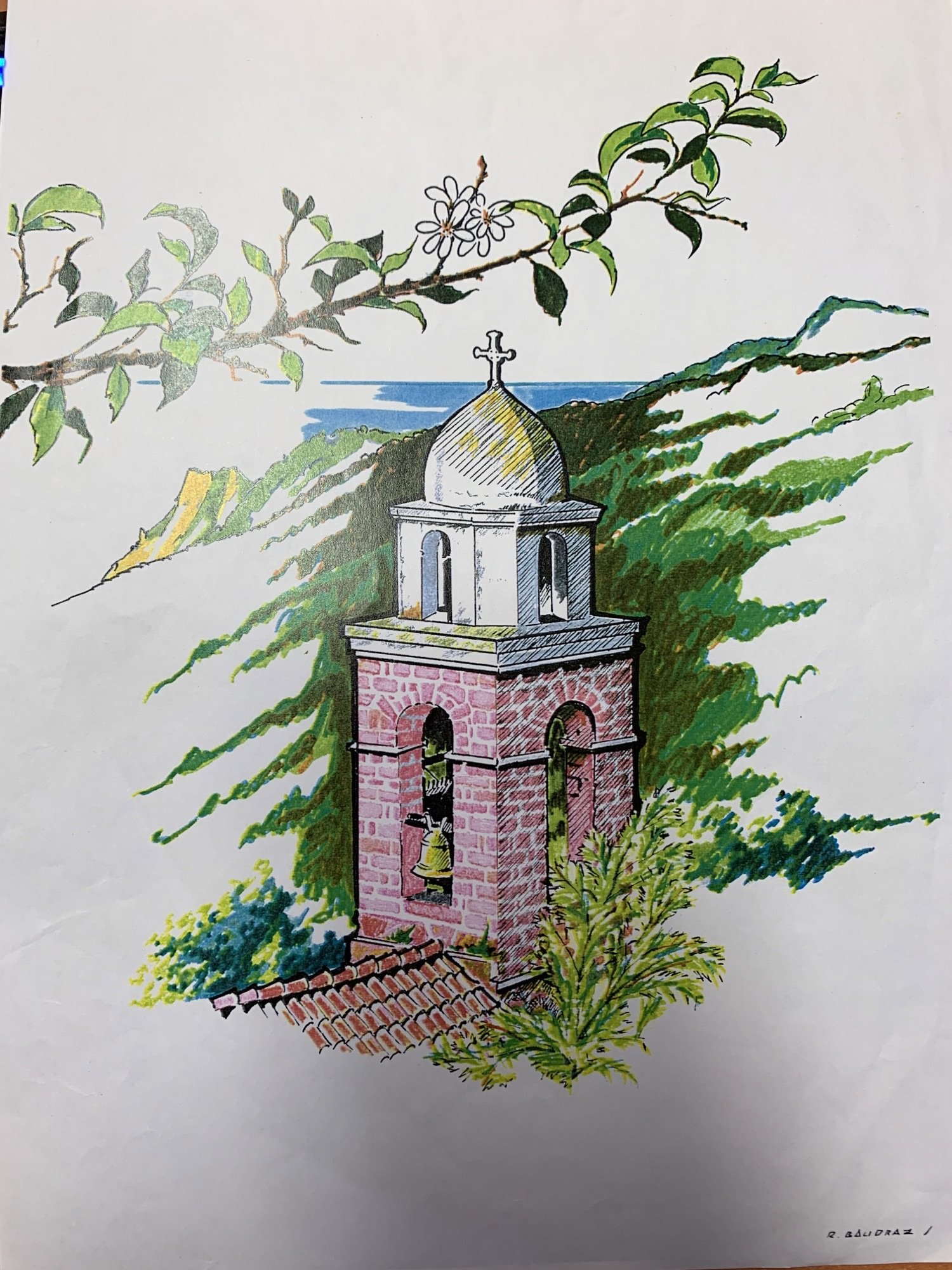 Travaux d'embellissement du clôcher , modification de l'électrification , pose d'un para-tonnerre ,d'une horloge et d'un tableau de Saint Antoine dans l'arche au dessus de la porte.